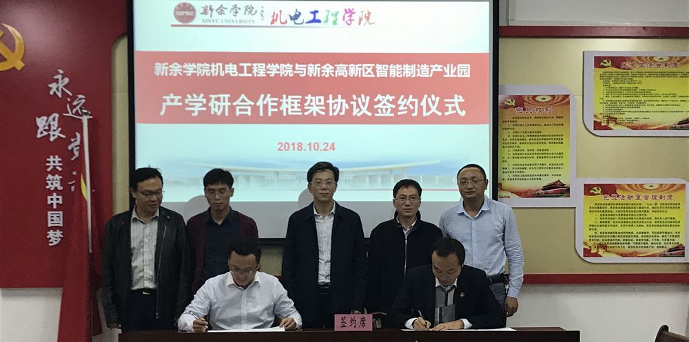 本站讯:10月24日下午,世界足球官网与新余高新区智能制造产业园举行产学研合作签约仪式在机电楼党员活动室隆重举行。