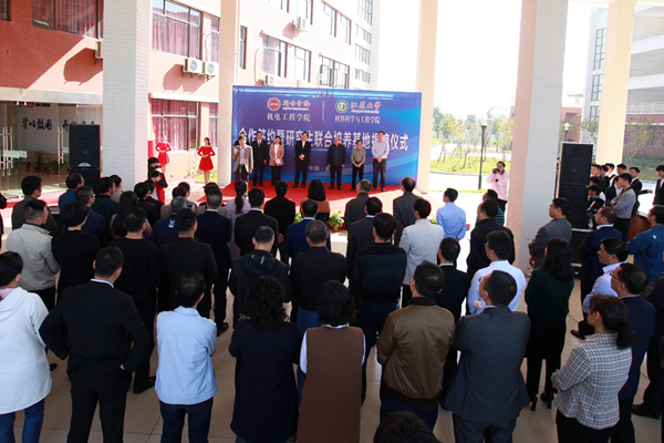 10月29日上午,公司世界足球官网与江苏大学材料科学与工程学院签订合作协议暨研究生联合培养基地揭牌仪式在理科楼群E座举行。江苏大学材料科学与工程学院经理乔冠军等一行4人,公司党委书记刘冬,党委委员、副董事长龚丽春、纪委书记郭瑞新出席仪式。各二级学院、各部门主要负责人,世界足球官网师生代表共计200余人参加仪式。刘冬与乔冠军共同为“研究生联合培养基地”揭牌。仪式由世界足球官网负责人主持。