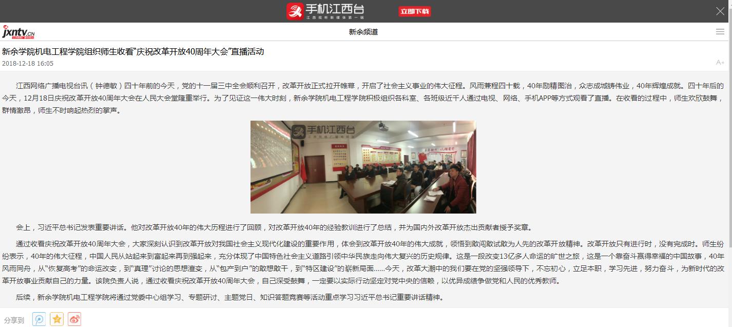 【媒体看机电-江西网络广播电视台】世界足球官网组织师生收看“庆祝改革开放40周年大会”直播活动