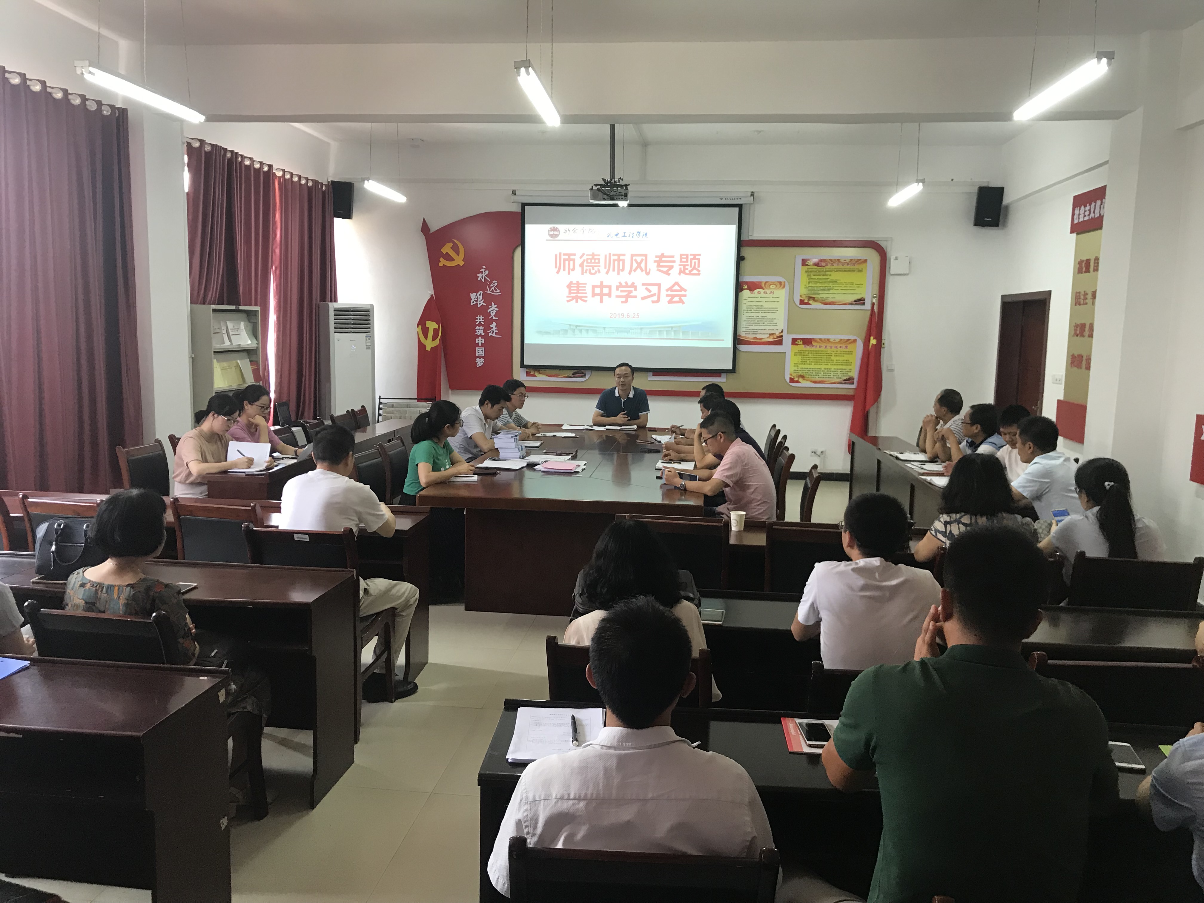 会上,与会人员认真学习了习近平总书记关于教育及师德师风建设的重要论述、《新时代高校教师职业行为十项准则》、《教育部关于高校教师师德失范行为处理的指导意见》等有关师德师风建设的学习材料。全体教师结合自己教学工作实际,就如何将教师十项准则落实到本职岗位;如何进一步强化廉政意识,筑牢纪律防线;如何做好教书育人等方面,进行表态发言。