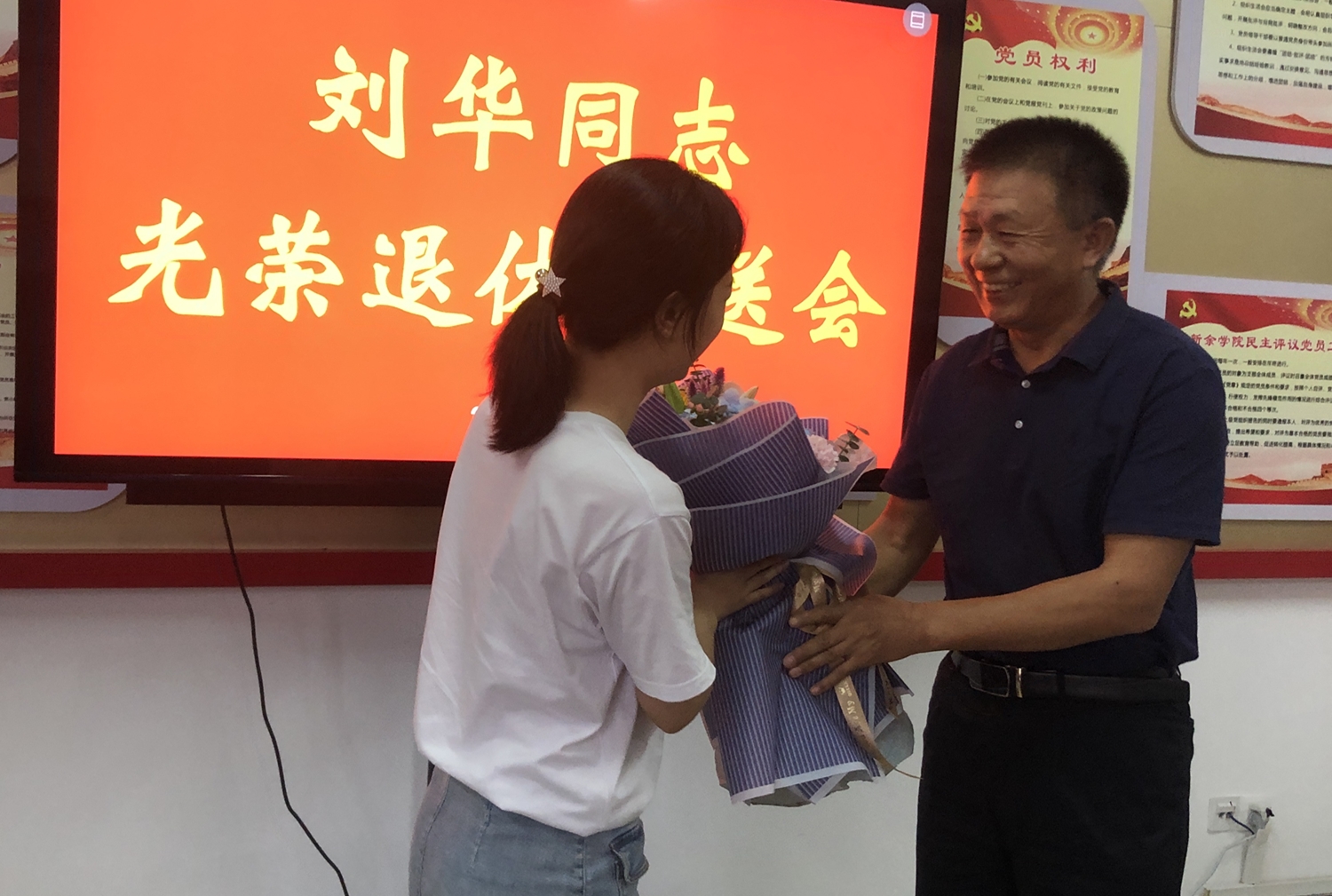 荣退仪式上,徐顺建代表世界足球官网祝贺刘华同志光荣退休,感谢他为世界足球官网公司产品事业做出的贡献,并送上诚挚的祝福和美好的祝愿;教师代表献上荣退赠言;年轻教师代表为荣退教师敬献鲜花;公司党委组织部代表学校对刘华同志荣退表达了崇高敬意,希望退休干部能够继续为“打造忠诚高校,争创全国文明校园”活动建设添砖加瓦,发挥好政治优势、经验优势、智慧优势、资源优势,多提意见建议,多献金玉良言,多给年轻教师指导。