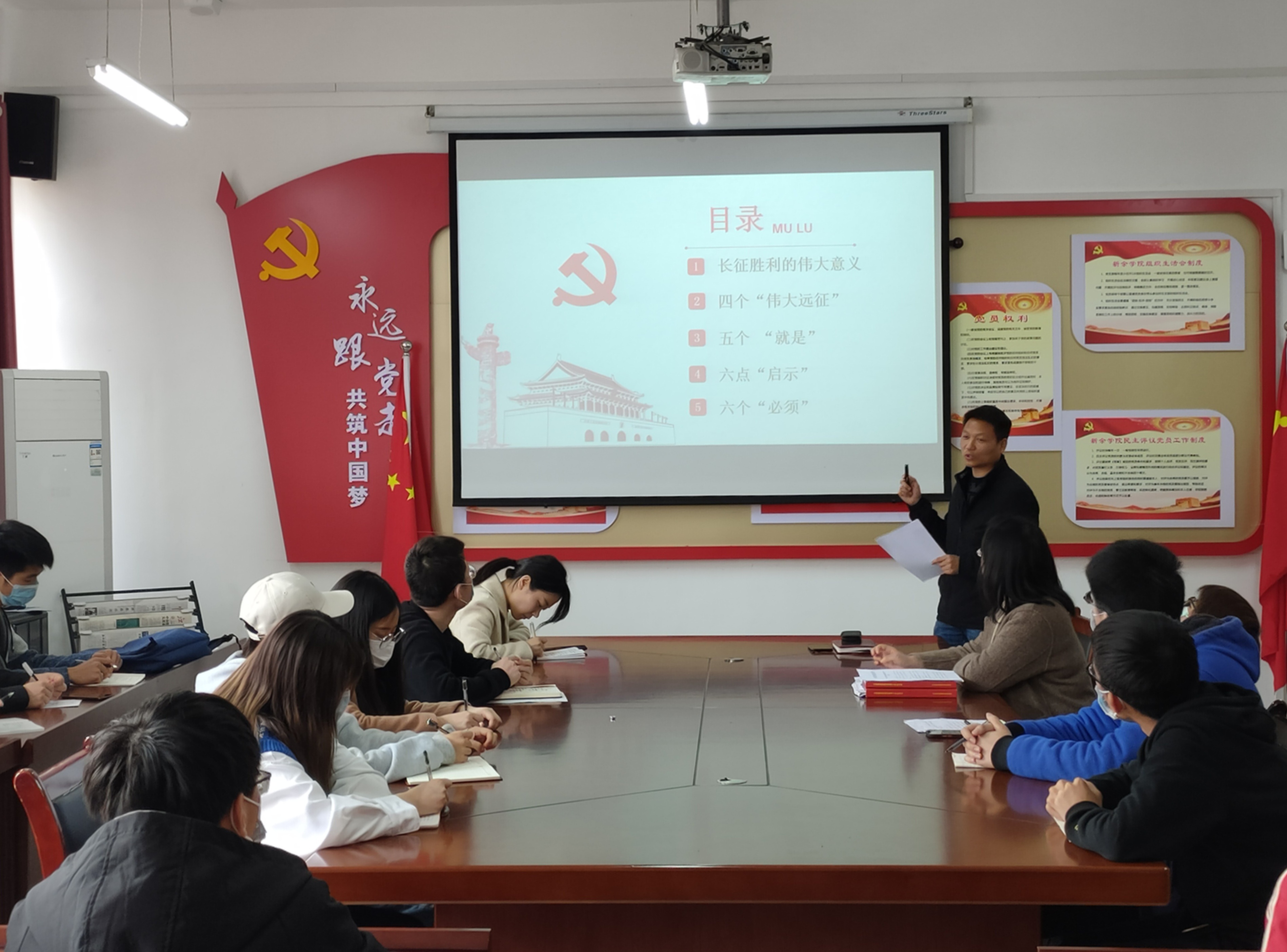 为响应党中央深入学习中国共产党百年党史号召,引导员工学史明理、学史增信、学史崇德、学史力行,4月13日下午,机电工程公司党委副书记方建新同志在党员活动室,为世界足球官网员工第一支部全体党员上了一堂题为“弘扬伟大长征精神,走好新的长征路”的专题党课。