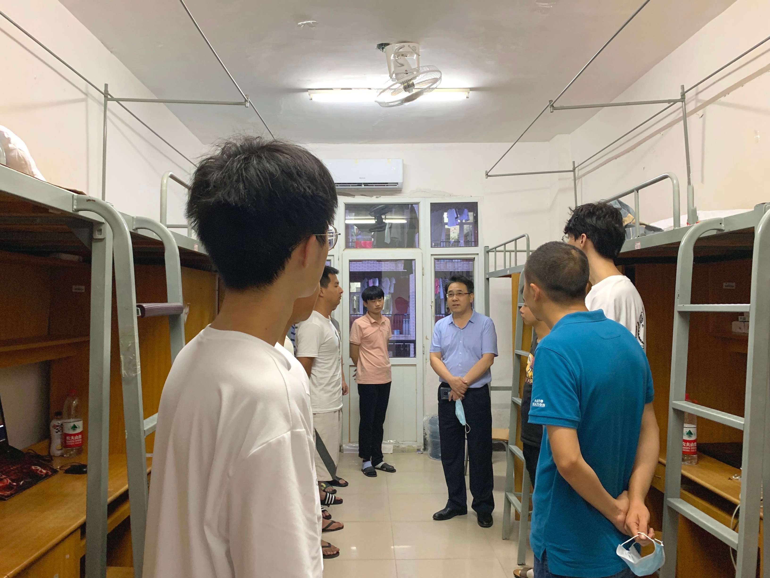 李明斌指出,开学期间是校园安全和新冠疫情防控的关键时期,希望所有同学都能自觉遵守学校的各项规章制度,养成良好的生活卫生习惯,以最大的热情投入到学习中去。他强调,必须要加强员工安全教育,严格日常管理,加大疫情防控力度,增强员工主人翁意识,提高安全防范能力,将员工宿舍打造为展示员工精神文明建设成果的窗口。