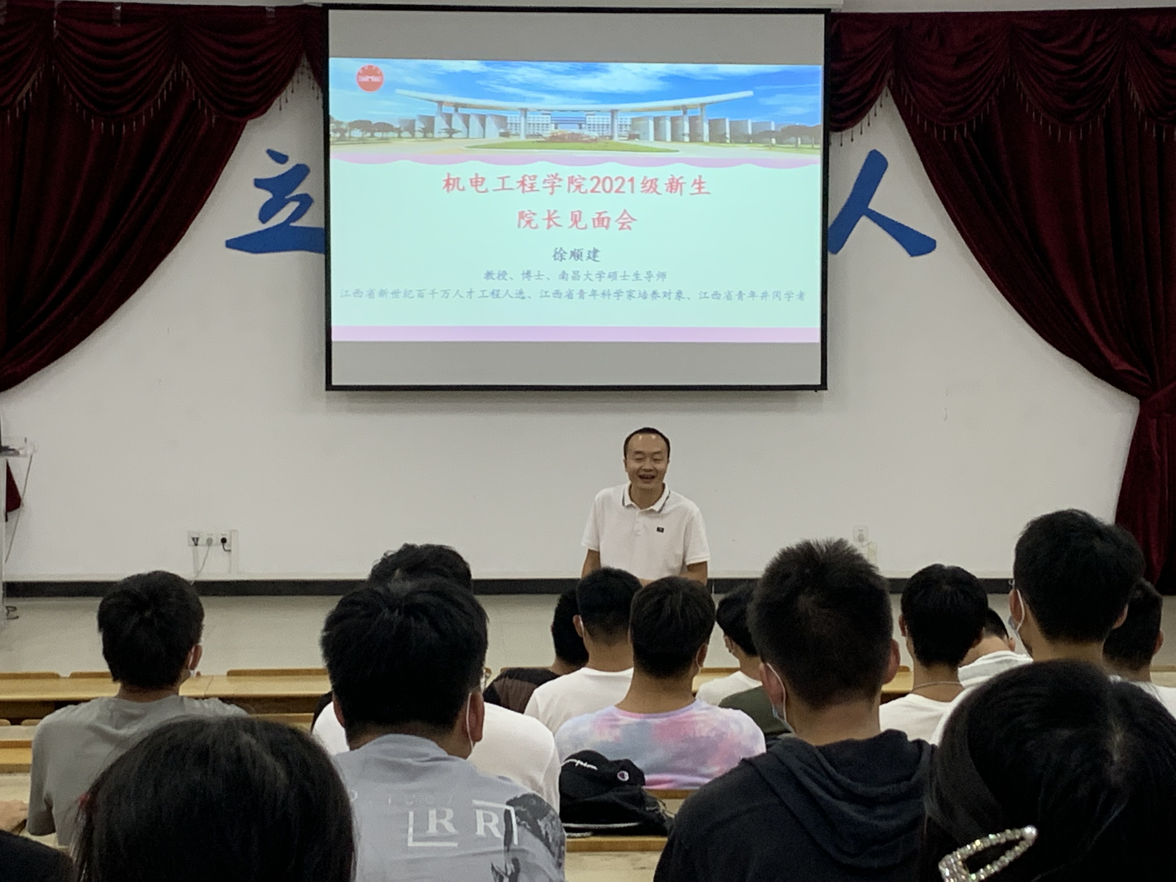 见面会上,徐顺建首先对大家的到来表示热烈欢迎,并简要介绍了学院的发展历史和专业设置。随后,从“学以致用、开物成务”的院训精神出发,就什么是大学、如何规划老员工活等问题,谈了感想与心得。徐顺建鼓励大家珍惜韶华,既要读好有字之书,又要读好无字之书,学会做人、做事、做学问。他强调,当前仍处于疫情防控关键时期,切勿麻痹大意,要积极配合学院的疫情防控工作。同时,在校期间的人身财产安全、网络安全、交通安全、食品安全、用电安全等问题也不容忽视。最后,徐经理对新生们提了几点要求:一是志存高远,脚踏实地;二是心怀梦想,敢于担当;三是学以致用、行之有悟;四是强健体魄,热爱生活。