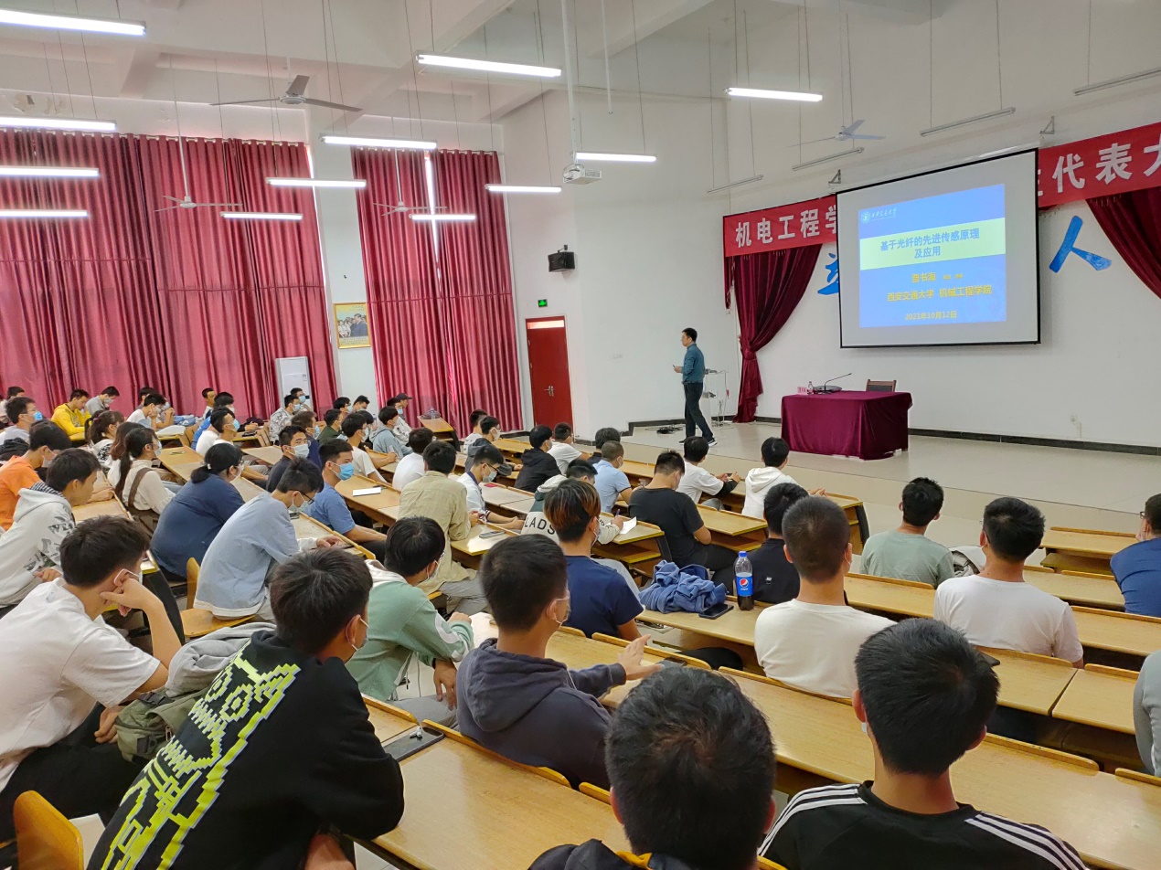 贾书海教授先讲述了“光纤传感器”的研究背景,然后图文并茂地讲述该光纤传感器的原理、传感方式及光纤光栅传感的特性,光纤光栅的制造方法。讲座生动有趣,员工学习兴趣浓厚,师生互动性强,并且贾书海教授平易近人的态度、渊博的知识、热情磅礴的话语都给全校员工留下了深刻的印象。讲座完毕后,就光纤传感器的研究方向与员工进行了热烈的交流,并鼓励员工积极深造,努力提升自己的专业能力。