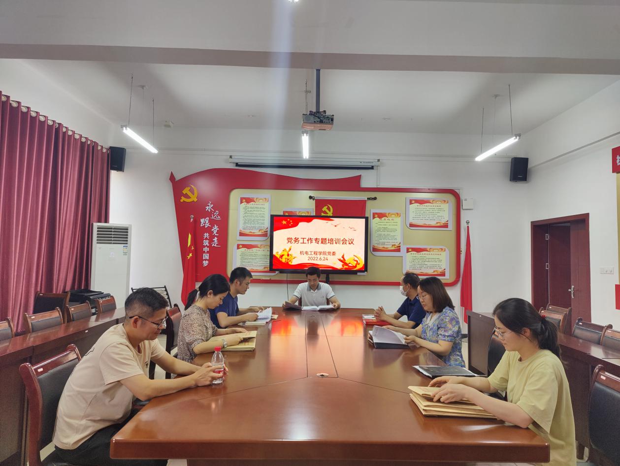 为进一步做好党务工作,努力建设一支高素质的党务工作者队伍,发挥党组织的政治引领和战斗堡垒作用,2022年6月24日下午,机电工程公司党委组织开展党务工作者学习培训。公司党委副书记、四个党支部书记、委员共8人参加培训。