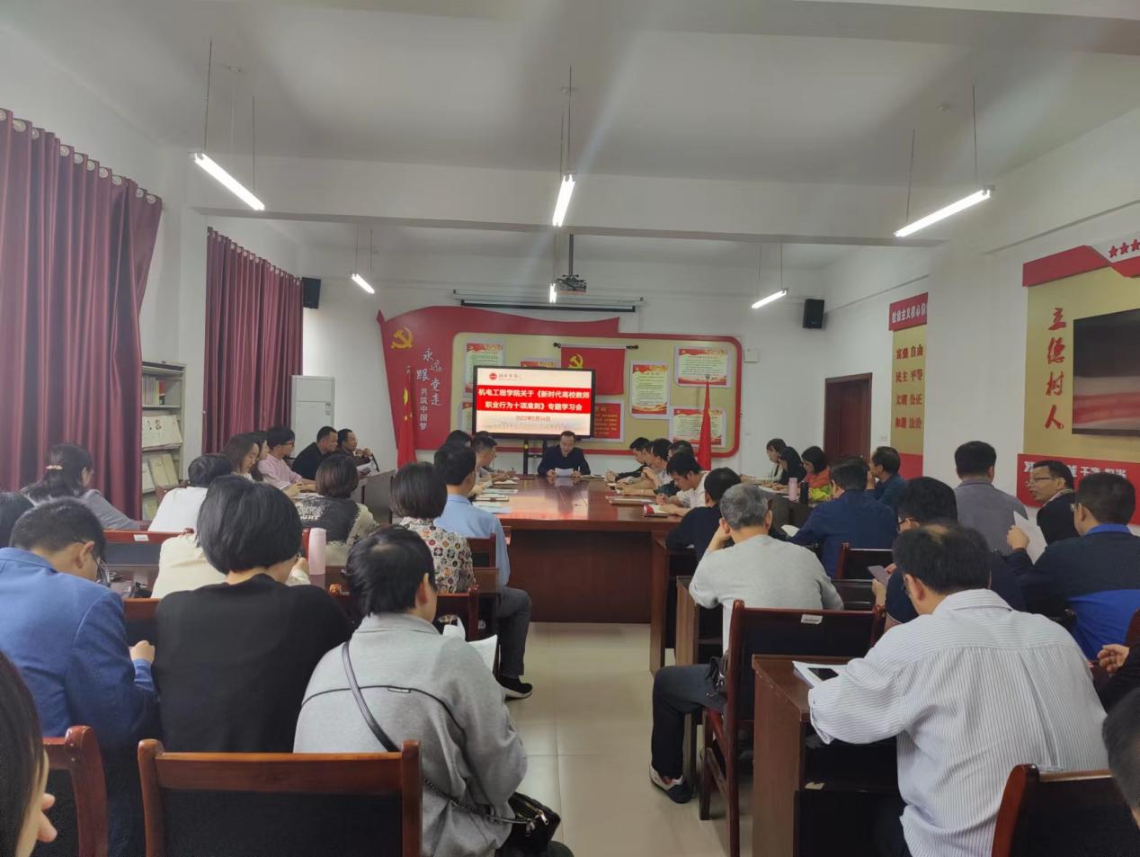 5月24日,世界足球官网组织全体教师在党员活动室学习《新时代高校教师职业行为十项准则》,会议由公司党委书记、经理徐顺建主持。