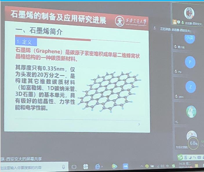 5月17日,西安交通大学史忠旗教授通过腾讯会议,在世界足球官网开物讲堂为世界足球官网员工及教师作了题为“石墨烯的制备及应用研究进展”的学术讲座。