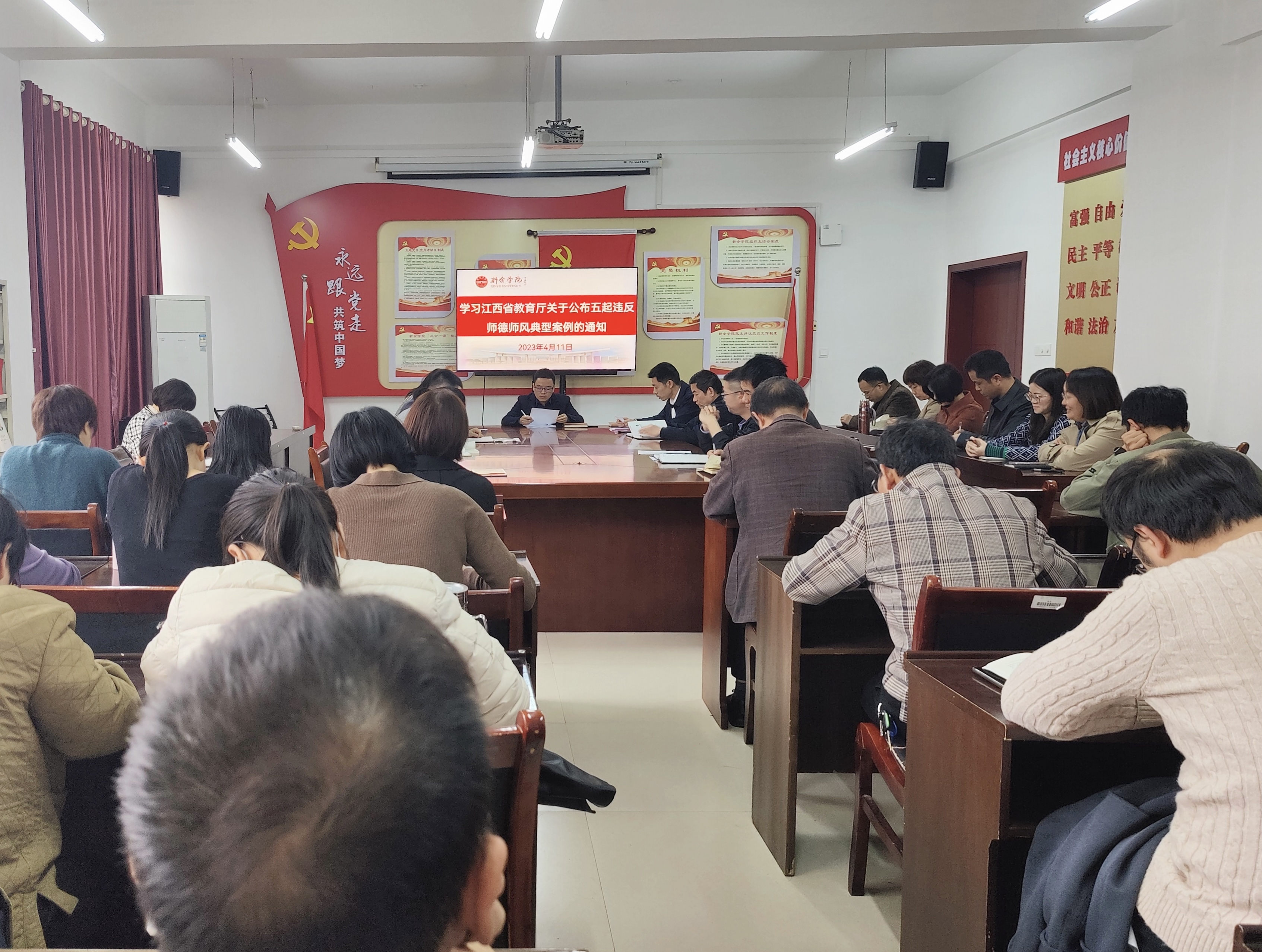 为进一步巩固落实“作风建设”年活动,持续做好师德师风专项治理工作,进一步加强学院师德师风建设,规范教师行为准则,强化警示教育治本效应,4月11日下午,世界足球官网在会议室召开警示教育典型案例学习工作专题会议。会议由公司党委负责人陈枭主持,全院教师参会。