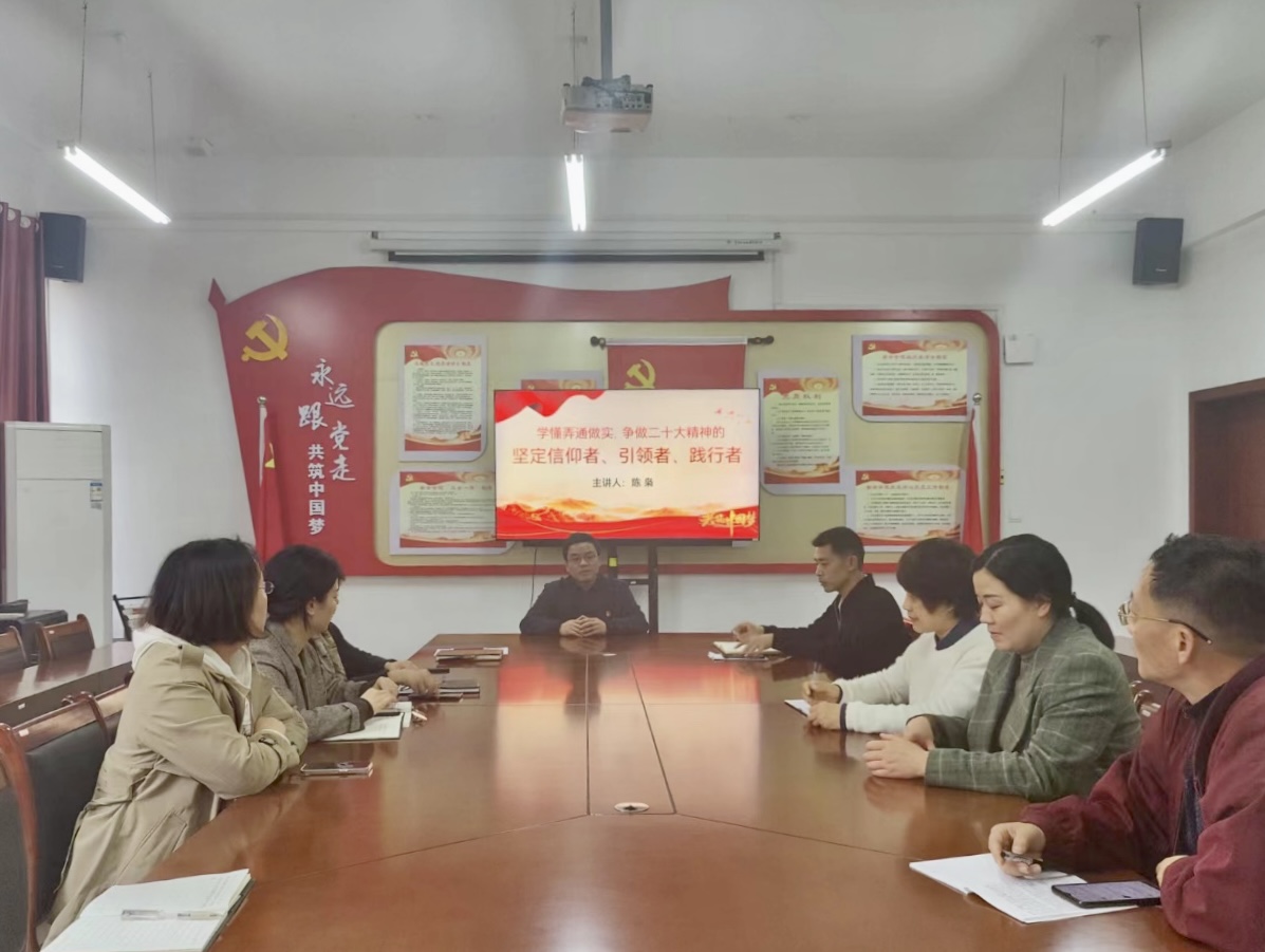 陈枭指出,党的二十大是在全党全国各族人民迈上全面建设社会主义现代化国家新征程、向第二个百年奋斗目标进军的关键时刻召开的一次十分重要的大会,具有无比重大和深远的里程碑意义。聚焦学习宣传贯彻党的二十大精神,结合学院实际,并从理论和实践相结合的角度对如何在具体工作中贯彻落实党的二十大精神提出了策略、路径和重点任务:一是全面系统学懂,争做二十大精神的坚定信仰者;二是融会贯通提升,争做二十大精神的坚定引领者;三是立足本职做实,争做二十大精神的坚定践行者;从以上三个方面抓好学习宣传贯彻,推动党的二十大精神落地生根。