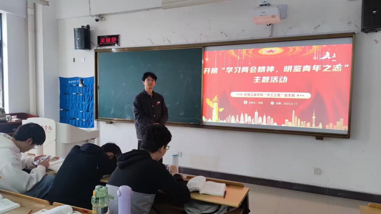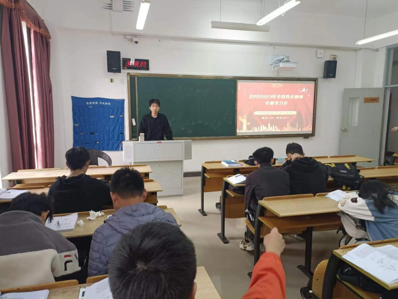 4月16日,在主教学楼B301召开第三期主题为“全国两会精神专题学习会”活动,由“天工之星”团支部纪检委员段新宇主讲。会上,段新宇表示学习领会全国两会精神,最重要、最根本、最核心的就是要深入学习领会习近平总书记在两会期间的一系列重要讲话精神,深入领会和准确把握习近平总书记关于党和国家事业重大成就的科学总结、关于推动高质量发展的科学部署、关于站稳人民立场的明确要求、关于统筹发展和安全的深邃思考、关于党和国家事业发展重要任务的清晰擘画,吃透精神实质,把握核心要义,加快推进中国式现代化建设,团结奋斗,开拓创新,在新征程上作出无负时代、无负历史、无负人民的业绩,为推进强国建设、民族复兴作出我们这一代人的贡献。