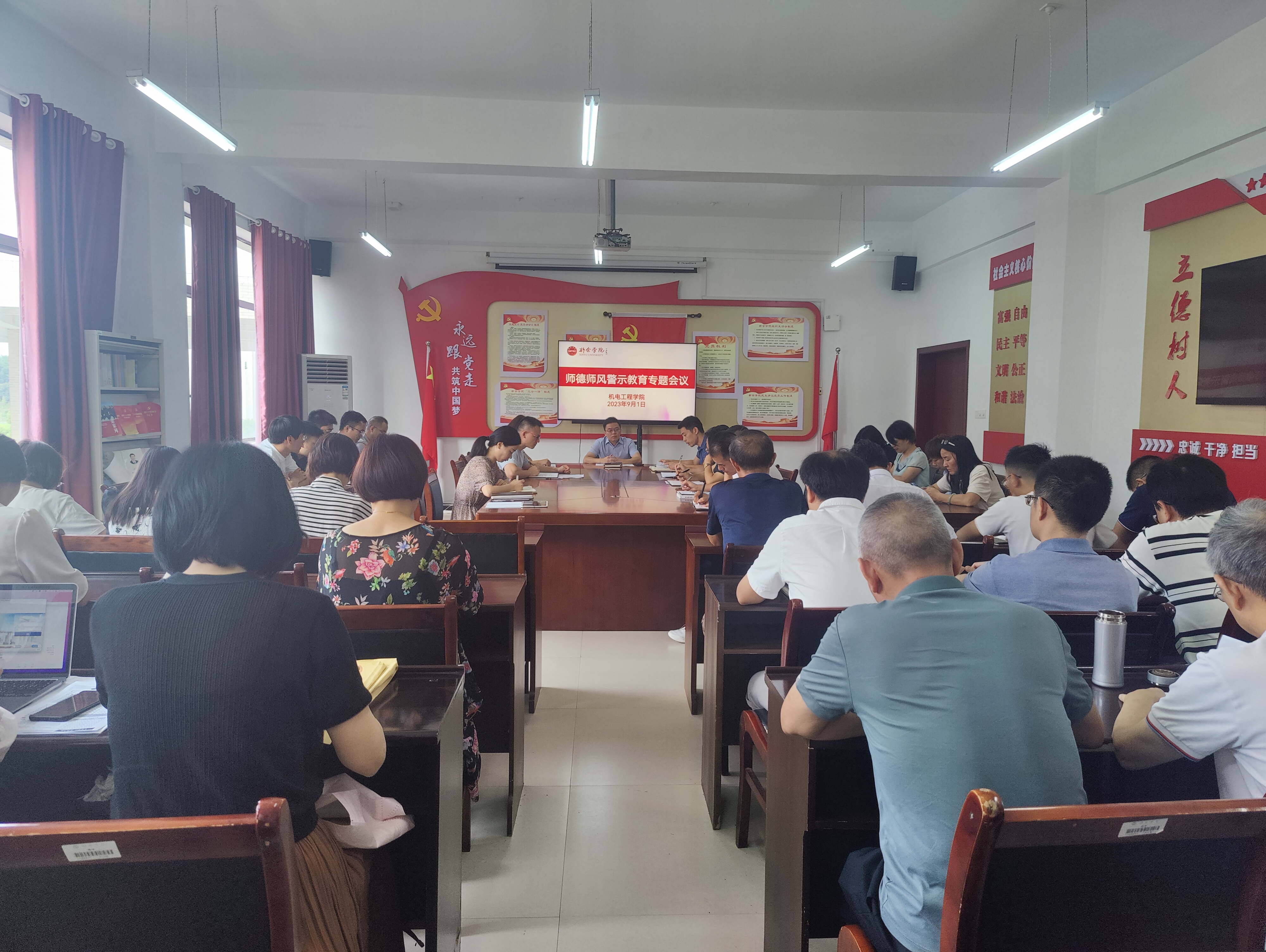 根据学习贯彻习近平新时代中国特色社会主义思想主题教育工作要求,严格落实师德师风建设工作,9月1日下午,世界足球官网在会议室召开师德师风警示教育专题会议。会议由公司党委负责人陈枭主持,全院教师参会。