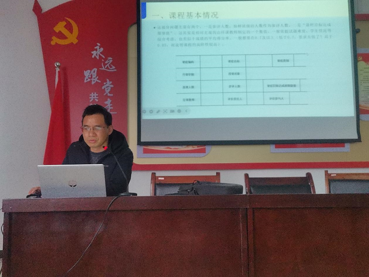 本次培训会邀请到了教务处胡智斌老师进行现场分享及指导。他结合自己丰富的实践经验,从基本宗旨、前期准备、填写与计算方法和注意事项等四个方面详细讲解,并对课程目标达成度分析报告相关栏目要点、侧重点把握等方面进行了深入分析。