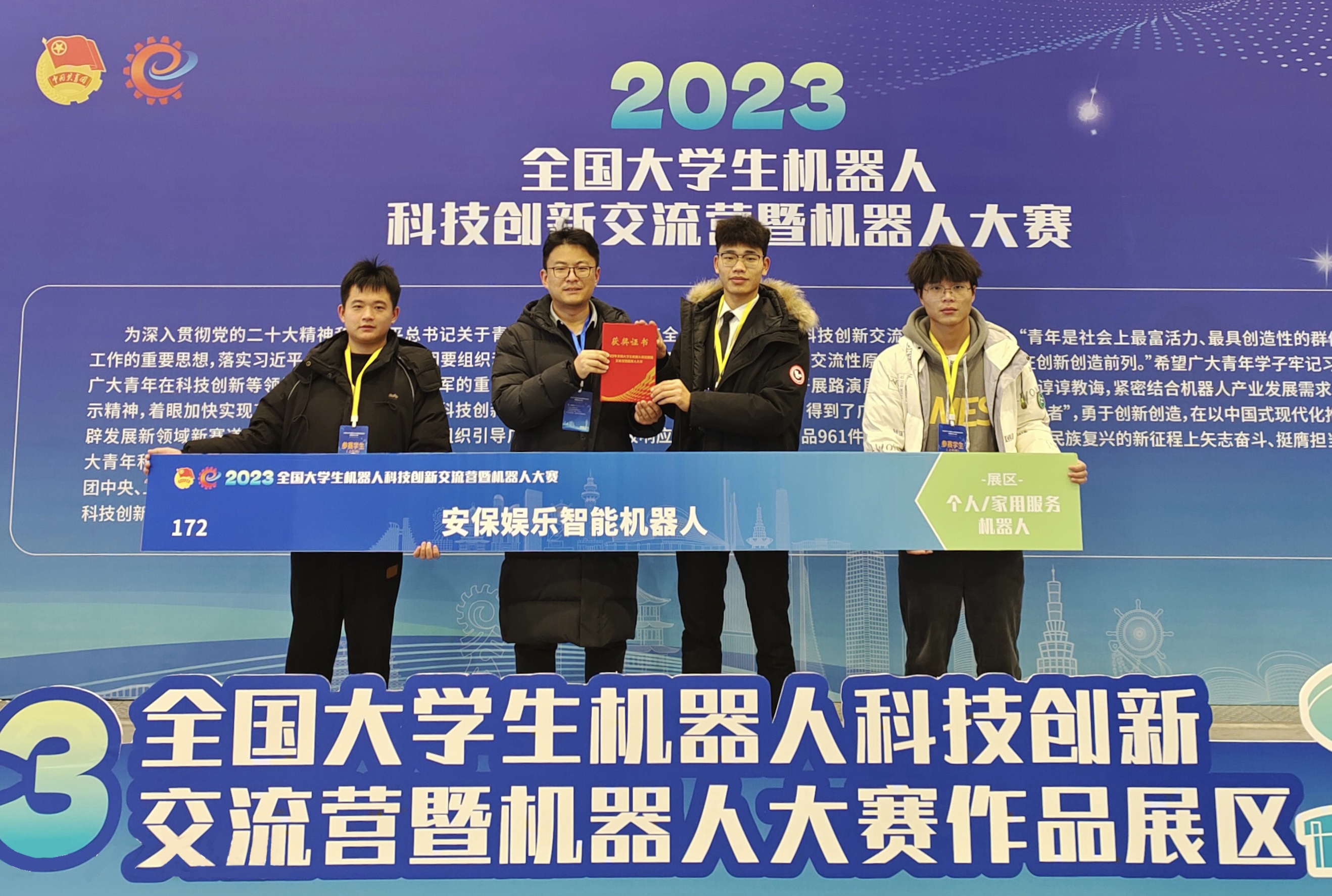 据悉,本次大赛分为工业机器人、个人/家用服务机器人、公共服务机器人、特种机器人和其他应用领域机器人五个赛道。参赛过程中,项目成员通过现场路演的方式向评委、各校参赛成员进行展示,并与来自不同高校的参赛选手进行交流。赛事期间还举行了作品公众开放日、集体研学、主题报告、科创报国主题分享会等系列活动,为参赛师生带来了一场精彩的科技嘉年华盛宴。由张宝、朱雪璇、严智敏老师指导张潇鑫、张杰、周斌等同学完成的参赛作品《安保娱乐智能机器人》获得全国一等奖。张宝、周京、李倩倩老师指导,周斌、张杰、张潇鑫等员工完成的参赛作品《“柔中带刚”——半柔体多功能家庭助手》获得全国三等奖。这是世界足球官网首次获得该类赛事的一等奖,实现历史性突破!