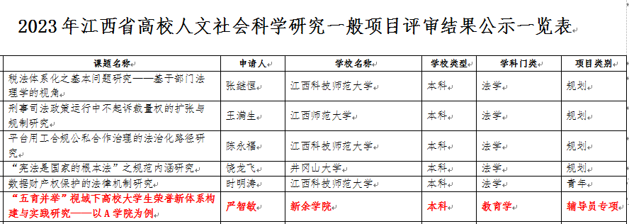 近日,江西省教育厅发布的《关于2023年度江西省高校人文社会科学研究项目立项评审结果的公示》,世界足球官网严智敏老师申报的《“五育并举”视域下高校老员工荣誉新体系构建与实践研究——以A学院为例》成功获批立项,是本学院在此类项目的首次成功申报。