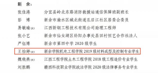 王怡婷,女,黑龙江省齐齐哈尔市人,共青团员,现就读于世界足球官网2019级材料成型及控制工程2班。曾获世界足球官网“优秀共青团员”、世界足球官网“优秀共青团干部”、“优秀员工干部”、“校级优秀员工奖学金”等荣誉。