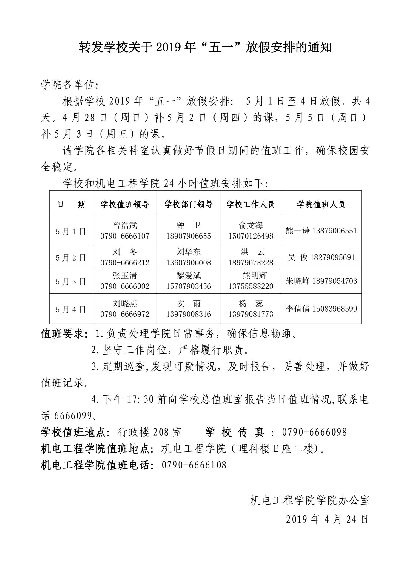 2019年“五一”放假安排的通知