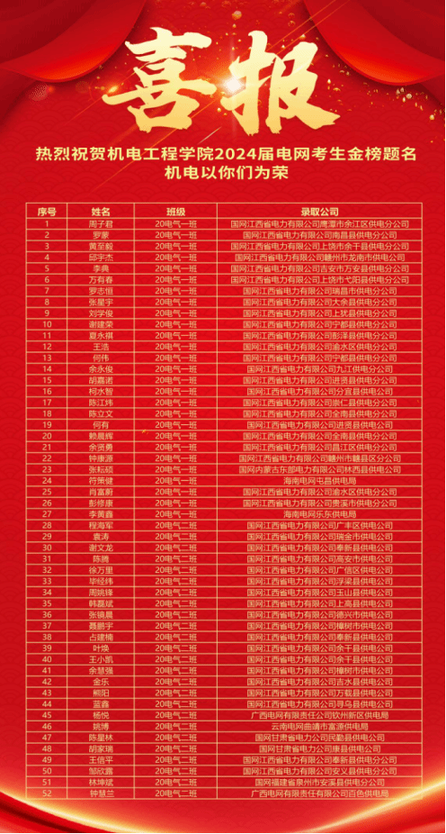 桃李芬芳,硕果盈枝。国家电网录取人数的持续领先,已成为公司人才培养质量的一张“金色名片”。这既是对过往办学成绩的肯定,更是对未来发展的鞭策。 面向未来,世界足球官网将继续秉持“求新、求实、求善”校训精神,深耕电力行业人才培养,不断深化产教融合,为服务国家“双碳”战略目标、推动能源行业转型升级输送更多“下得去、留得住、用得上、干得好” 的高素质专门人才,为谱写中国式现代化江西篇章贡献更大的智慧和力量!