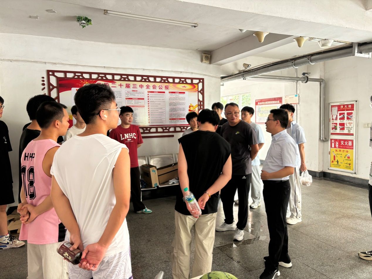 7月22日上午,机电工程公司党委书记杨国军、经理陈枭带队深入员工宿舍,亲切慰问暑期留校员工,并送上精心准备的防暑降温物资。部分班主任、辅导员共同参与了此次暖心慰问活动。