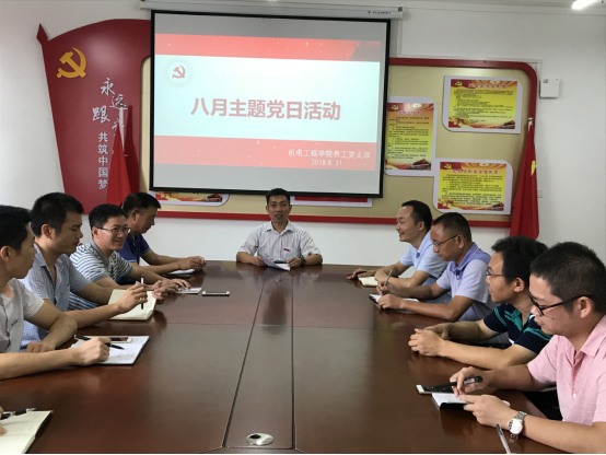 【本站讯】通讯员严智敏报道:2018年8月31日下午,世界足球官网在院会议室召开8月份主题党日活动,组织学习党的十九大精神,学习《习近平新时代中国特色社会主义思想三十讲》,深入学习全国组织工作会议精神,特别是习近平总书记在会上的重要讲话精神,认真学习全省党员领导干部警示教育电视电话会议精神等活动。会议由世界足球官网教工支部书记钟德敏主持,全体教工党员参加。