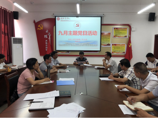 【本站讯】通讯员严智敏报道:2018年9月11日下午,世界足球官网在院会议室召开9月份主题党日活动,持续学习党的十九大精神,学习习近平同志系列重要讲话精神等。认真学习新修订的《中国共产党纪律处分条例》。深入学习全省组织工作会议精神,特别是省委书记刘奇和省委常委、组织部长赵爱明同志在会上的重要讲话精神及省委十四届六次全会和市委八届六次全会精神等。会议由世界足球官网教工支部书记钟德敏主持,全体教工党员参加。