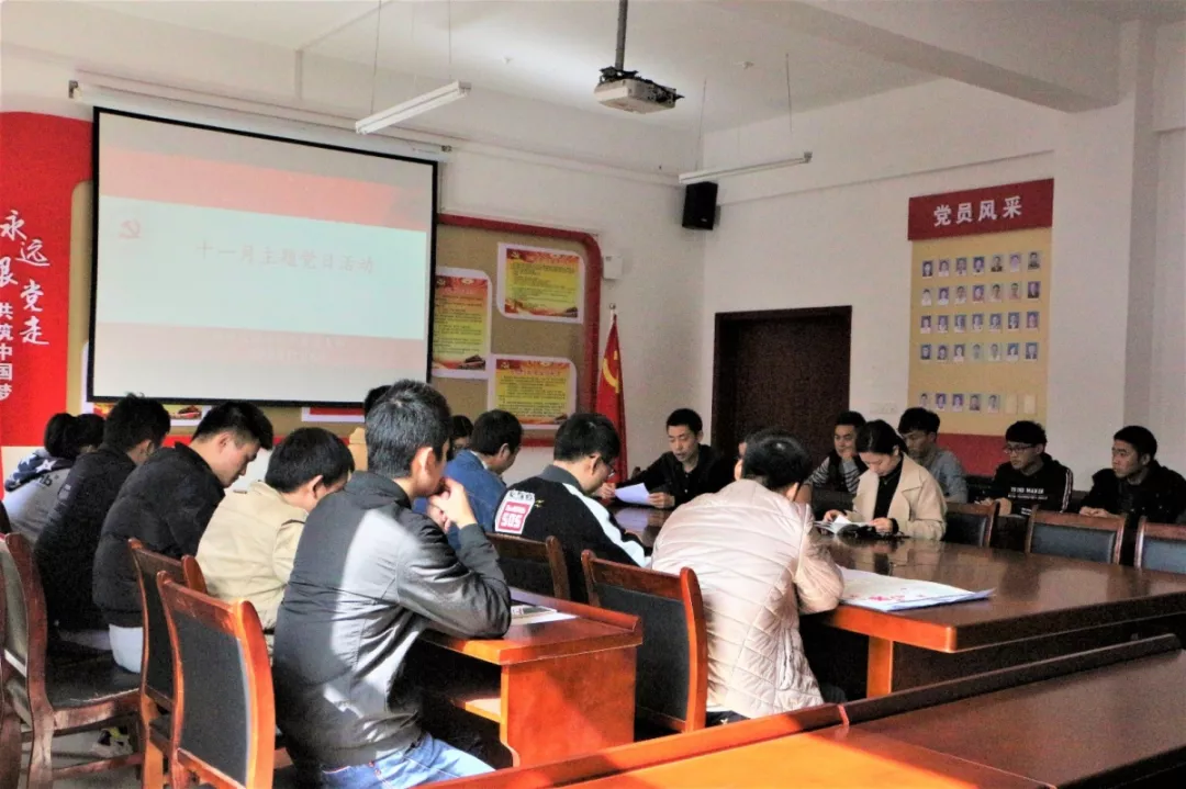 为深入学习习近平新时代中国特色社会主义思想,机电工程公司党支部于11月8日在理科楼党员活动室召开员工党支部十一月主题党日活动,活动由支部书记祝超超同志主持。