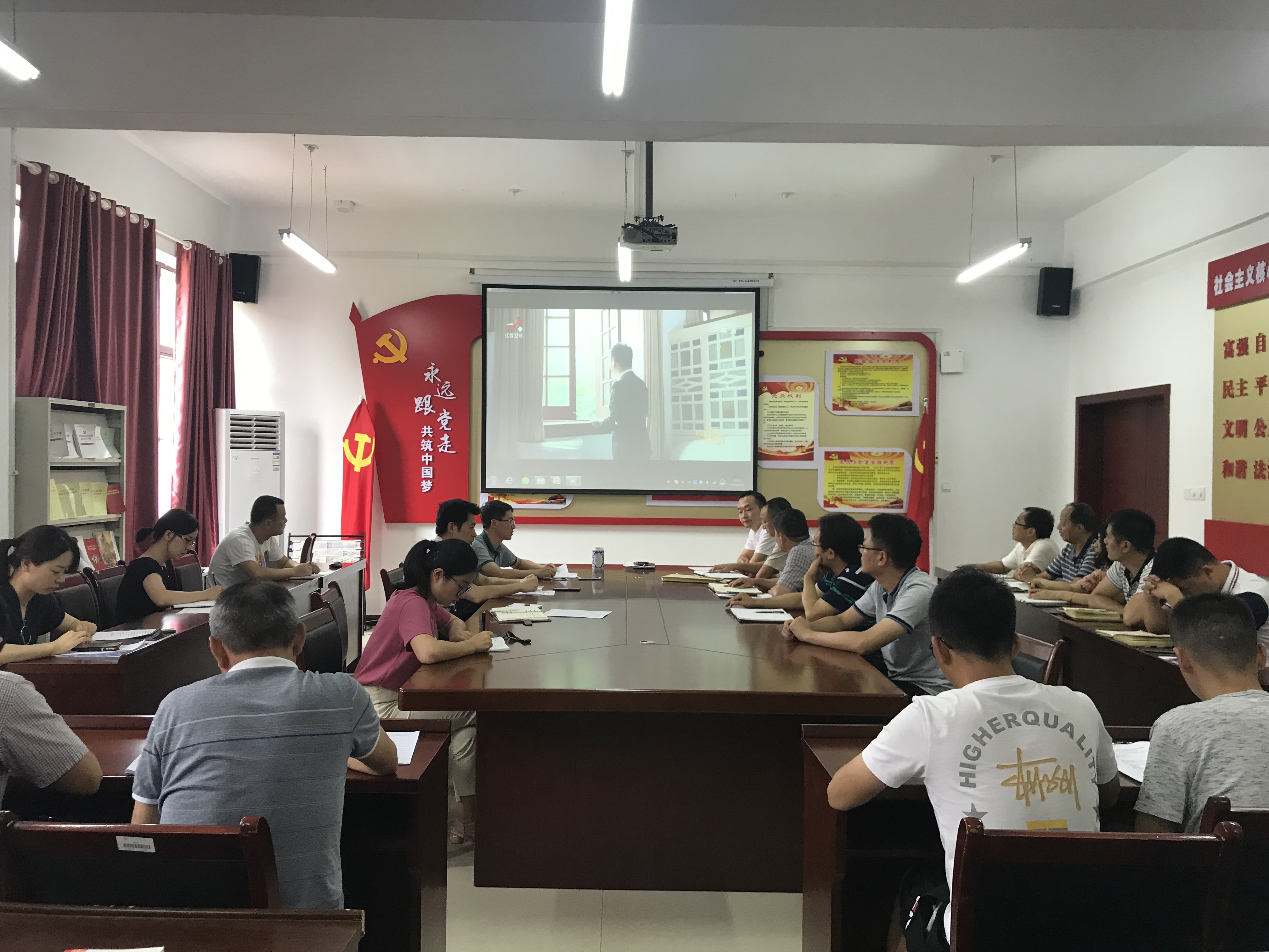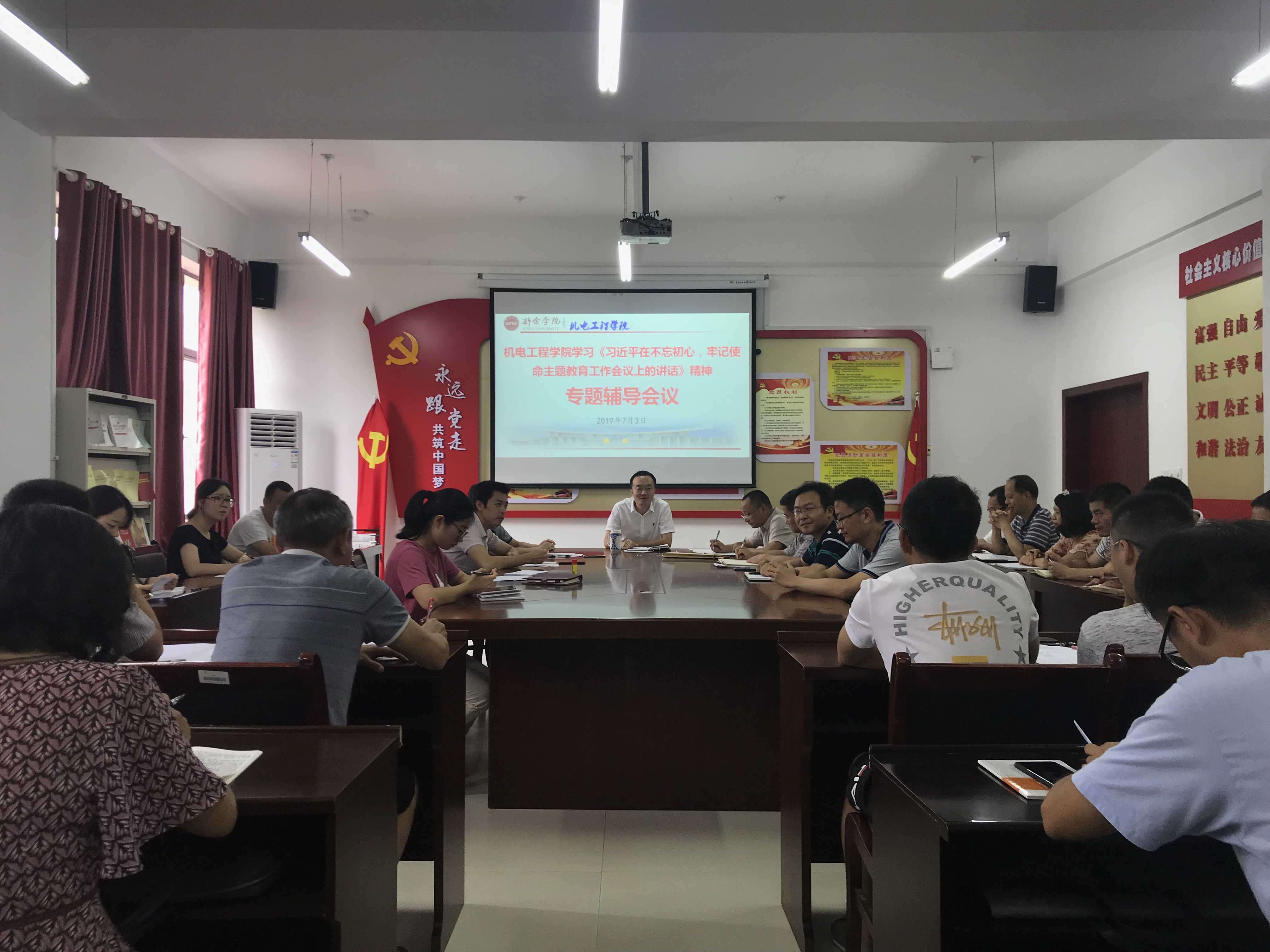本站讯:7月3日,世界足球官网召开专题辅导会议,再次学习贯彻习近平总书记在“不忘初心、牢记使命”主题教育工作会议上的重要讲话精神,并集体观看了《跨越时空的回信》《党章中的党史——忠诚源于信仰》等视频。学院全体教师参加会议。