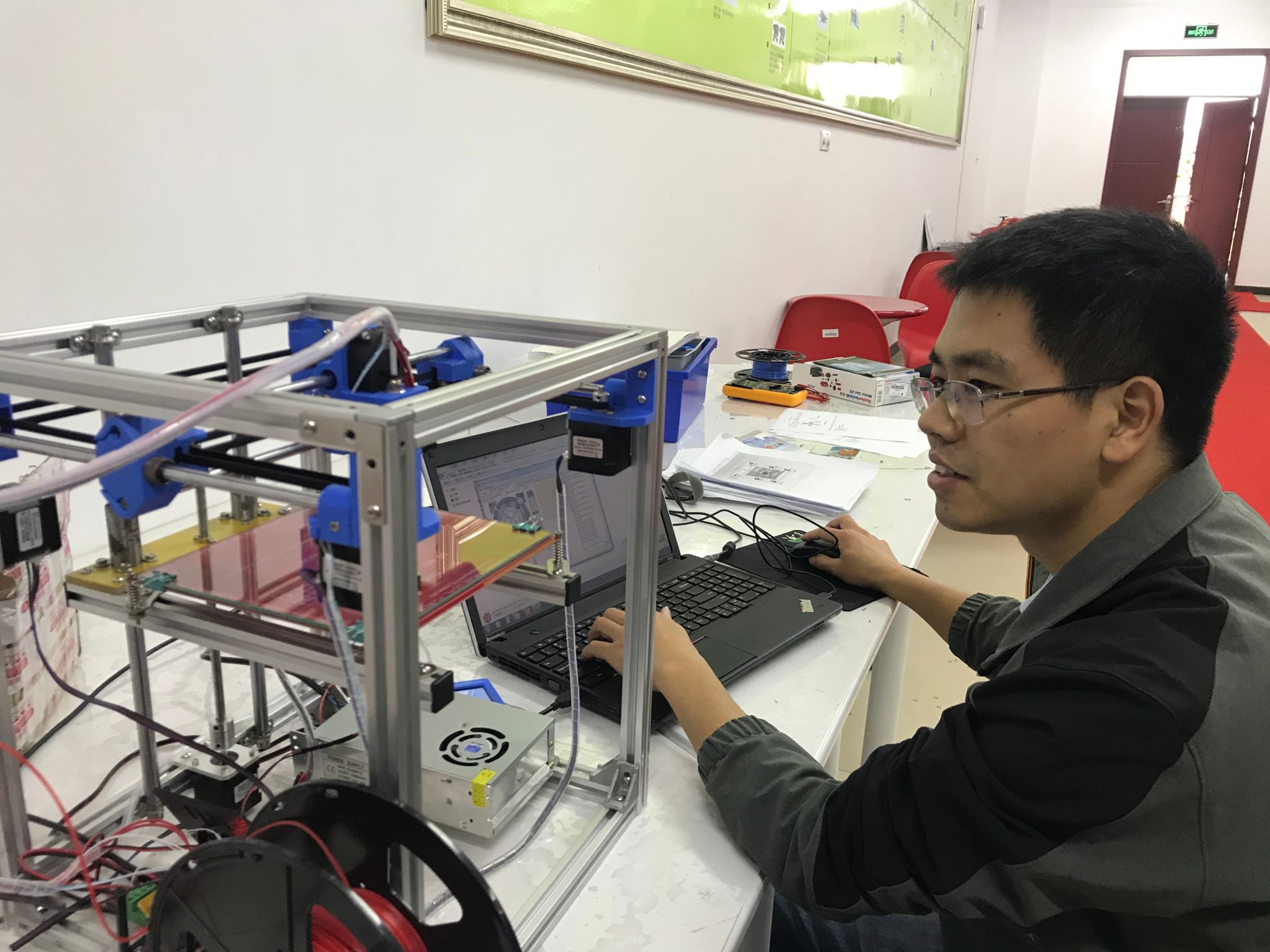 本站讯:机电工程公司党委和教师把“不忘初心、牢记使命”主题教育学习有机融入到技术研发工作。主题教育期间,该公司党委和各团队负责人、技术尖子积极沟通协调,组织人员在工作间隙或者业余时间,采取集中学习、交流研讨等多种形式,读原著、学原文、悟原理,同时,科研技术攻关一个不停歇。该学院入党积极分子、青年教师刘磊工程师完成了通过手机远程实时监控的3D打印机设计和制作,相关专利正在申请中。