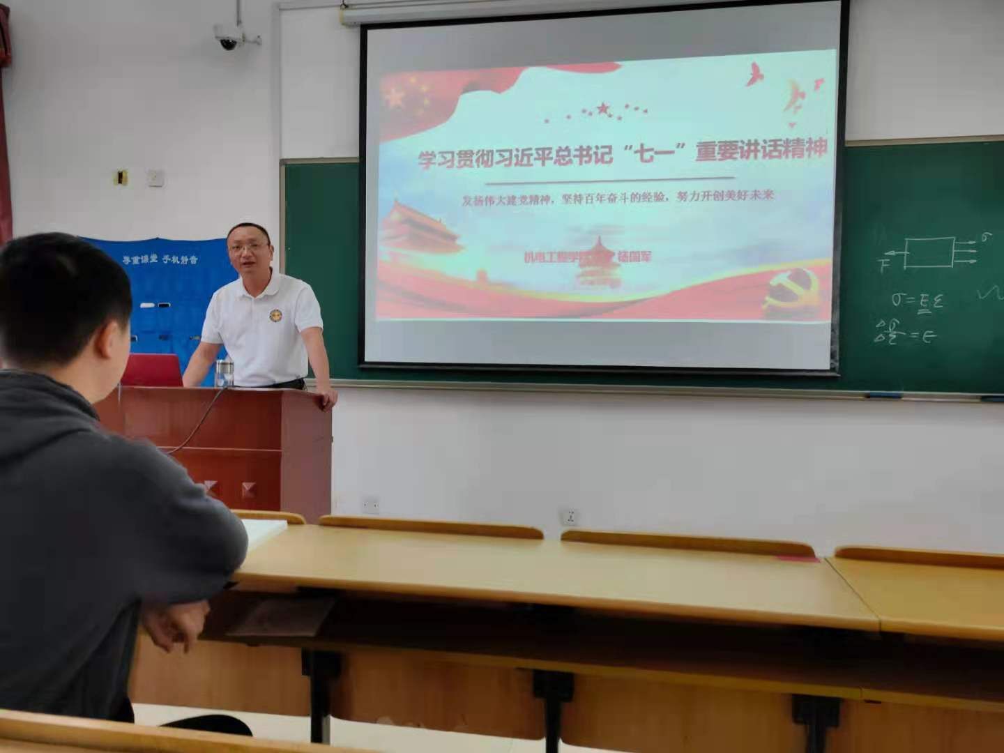为深入学习贯彻习近平总书记“七一”重要讲话精神,10月12日,机电工程公司党委书记徐顺建、党委副书记方建新、副经理杨国军、副经理陈枭分别给联系班级作专题宣讲。