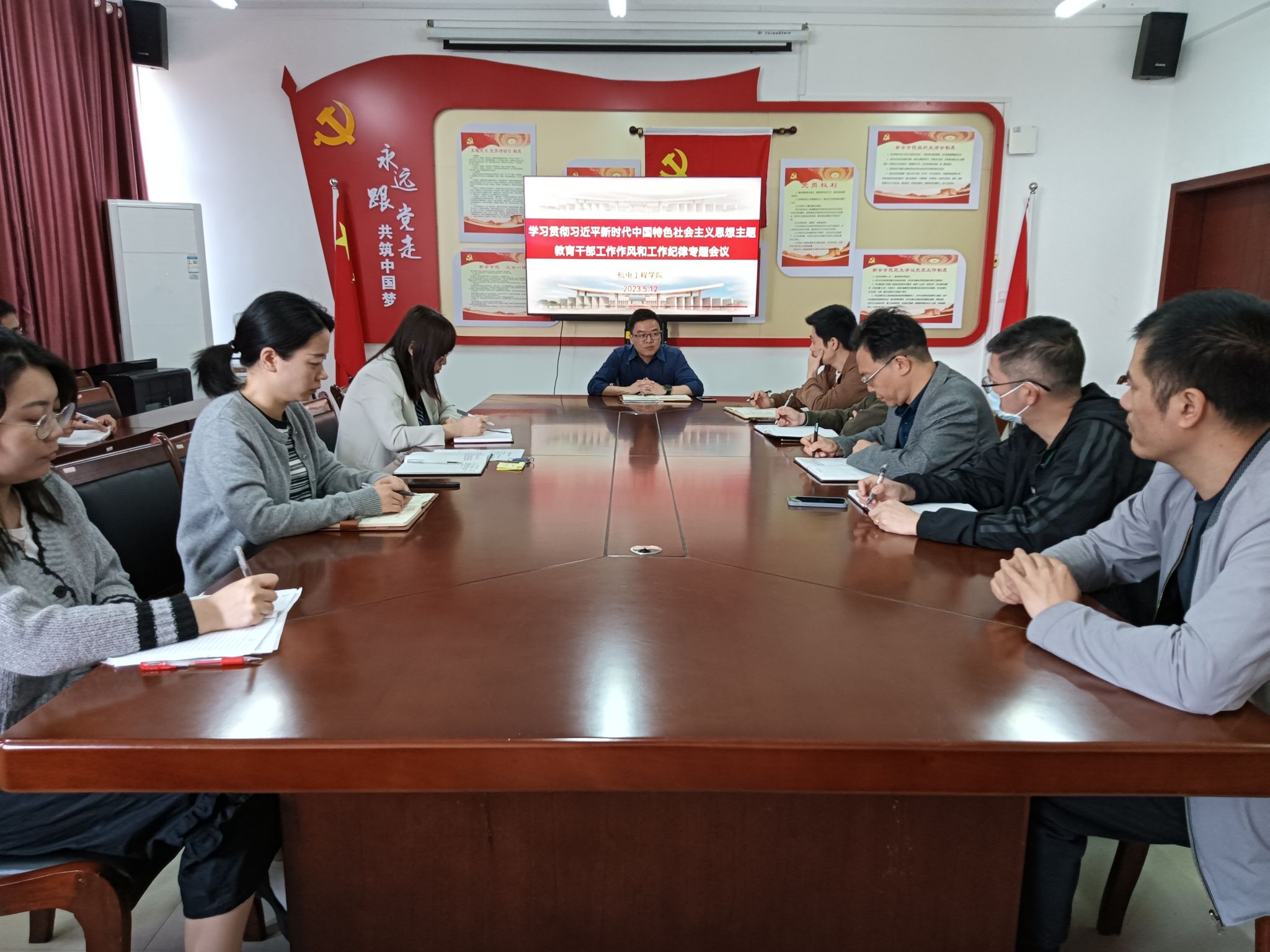 会上,陈枭强调,要把学习贯彻习近平新时代中国特色社会主义思想不断引向深入,从中汲取不懈奋斗的源泉动力、增强学思践悟的政治智慧、筑牢拒腐防变的堤坝防线,以只争朝夕、时不我待的精神,团结带领师生员工把学院建设成人才培养主阵地、科研攻关主力军和创新驱动策源地。要坚持对标对表,严明纪律作风,认真履行“一岗双责”,加强党风政风、院风教风、师德师风、学风考风教育引导,营造风清气正的育人环境。