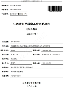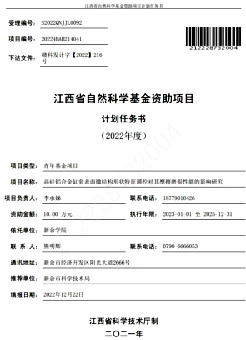 22 | 航空用Al-Cu-Mg-Ag系耐热铝合金时效析出行为及耐腐蚀性能研究 | 江西省教育厅科技项目 | 余创 | 江西省教育厅 | 202510-202710 | 3 |