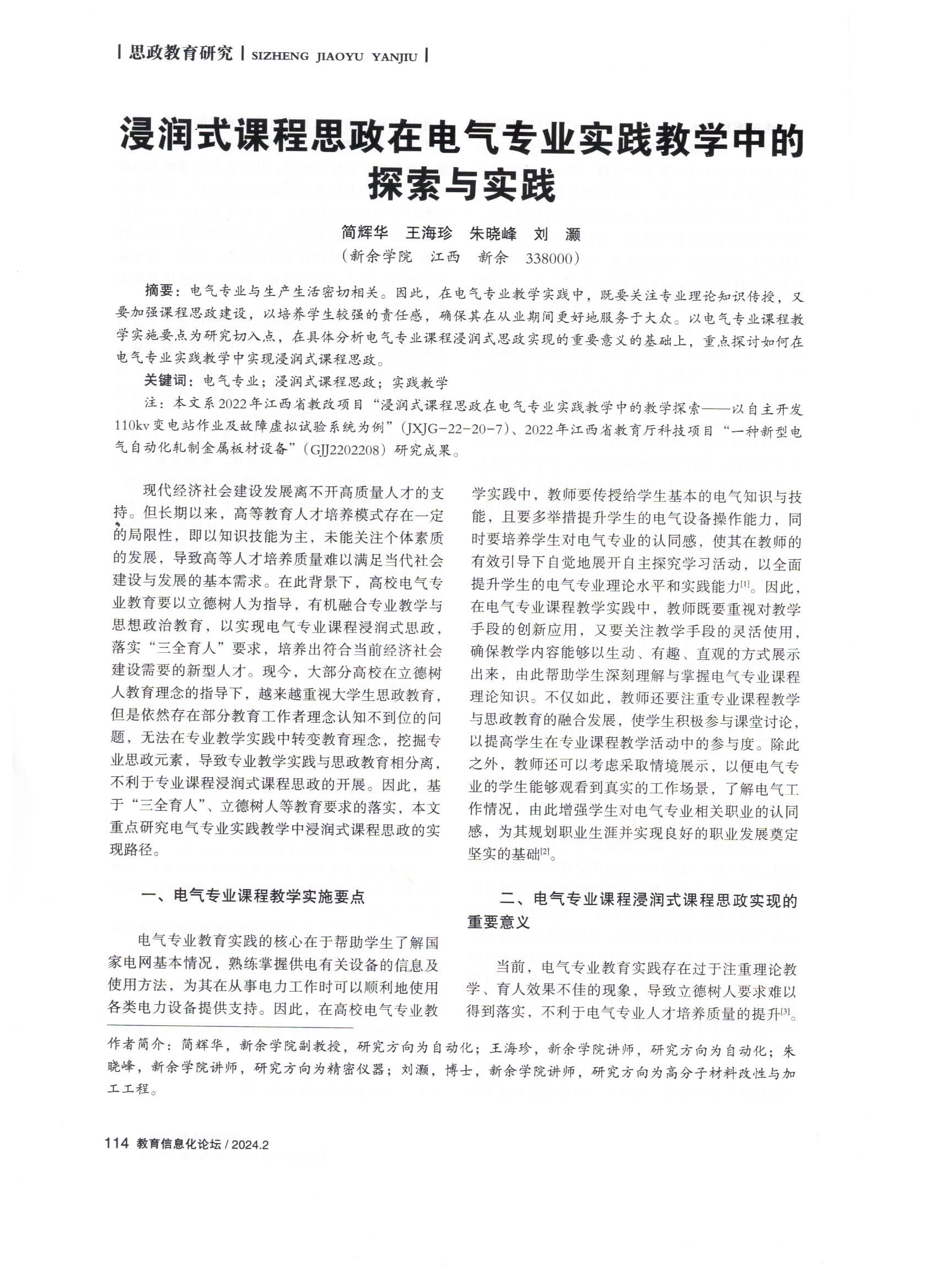 12 | 浸润式课程思政在电气专业实践教学中的探索与实践 | 教育信息化论坛 | 简辉华 | 2024 |