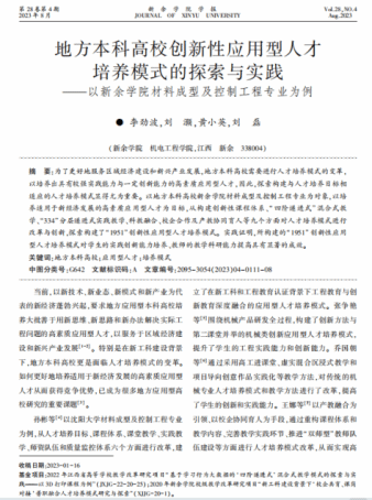 10 | 地方本科高校创新性应用型人才培养模式的探索与实践-以世界足球官网材料成型及控制工程专业为例 | 世界足球官网学报 | 李劲波 | 2023 |