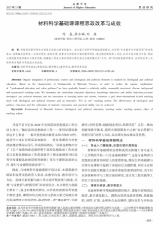 9 | 《材料科学基础》课程思政改革与成效 | 高教学刊 | 陈枭 | 2023 |