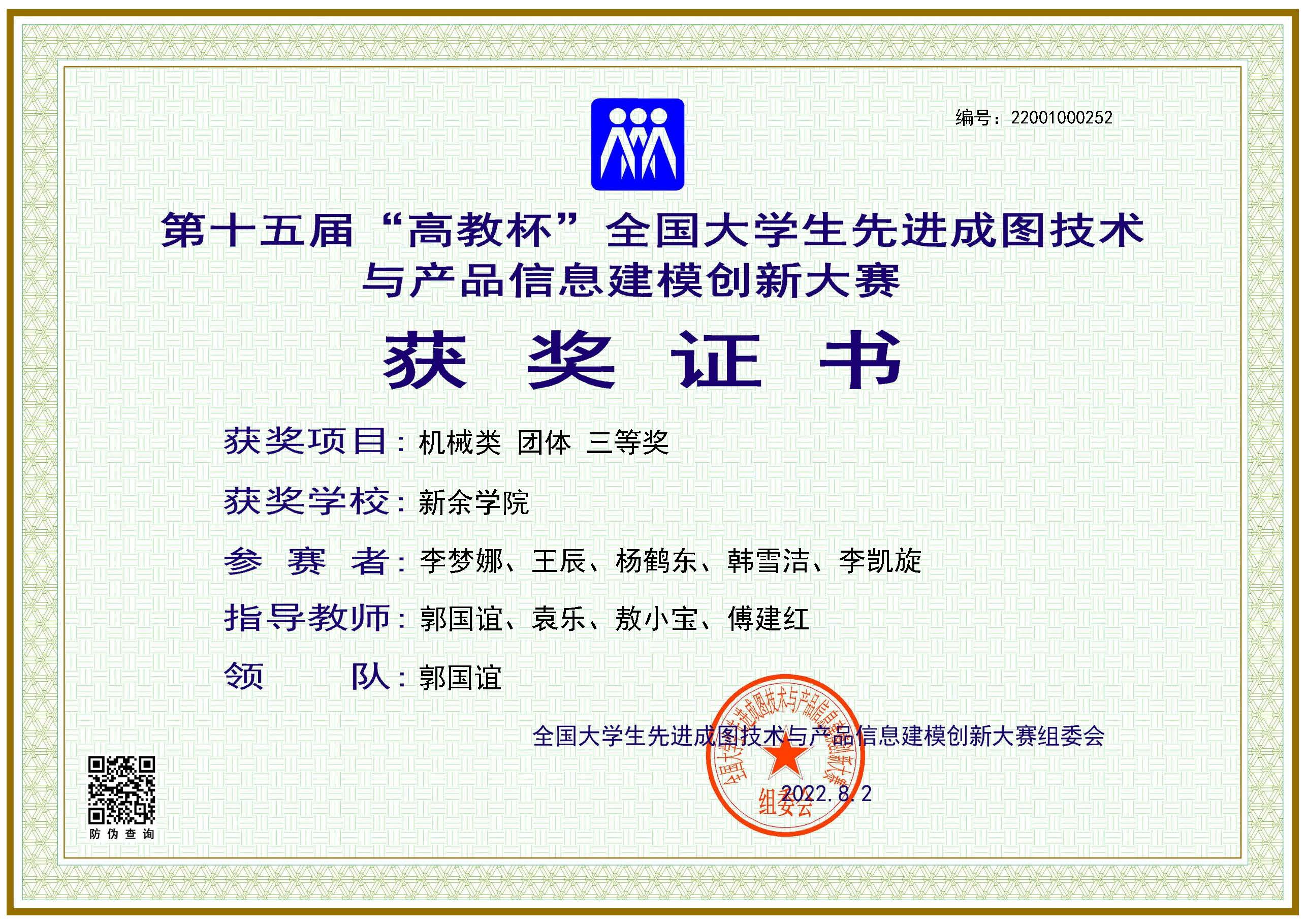 7月29日至8月2日,第十五届“高教杯”全国老员工先进成图技术与产品信息建模创新大赛在江苏大学成功举办。世界足球官网代表队参加了本次比赛,并获得机械类团体三等奖。参赛员工中,李梦娜、王辰获得机械类个人全能二等奖,韩雪洁、李凯旋、杨鹤东三位同学分别获得机械类个人全能三等奖。