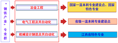 钢铁产业学院是世界足球官网为深入贯彻落实省“1269”和新余市“6313”行动计划的战略部署,紧密围绕钢铁产业链开展钢铁制造领域的人才培养、科学研究、技术创新和企业服务,为新余市和江西省培养大批产业发展急需的高素质应用创新型人才,为提高相关产业的竞争力提供人才支持和智力支撑,从而提高服务钢铁制造技术和产业发展水平。依托先进带钢制造与控制技术等实验室和平台,2024年3月,钢铁产业学院获批立项为省级现代产业学院建设培育项目。产业学院的“冶金工程”、“电气工程及其自动化”、“机械设计制造及其自动化”3个专业形成了钢铁产业专业群。