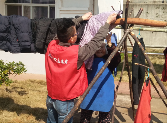 一大早,志愿者们就赶往马洪敬老院。到达敬老院后,志愿者们分成了四个小组,元气满满,各自开启了自己的爱心之旅。志愿者们和老人们聊天、整理衣物、擦拭家具、分享自己的校园生活、还为老人们表演了小节目,老人们都露出了开心的笑容,这让我们在平凡中感受不平凡。