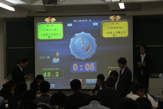 经过一周紧张刺激的角逐,最终16机制本与17电气一班脱颖而出,坐在了至高的决赛舞台上。双方以“高费上学利大于弊”为辩题展开激烈辩论,辩论环节双方你来我往,毫不相让。自由辩论环节,辩手们引经据典、旁征博引,运用大量的理论依据,赢得台下观众们的阵阵掌声和欢呼声。尤其是第三组辩手,将整场辩论赛引入高潮,博得了评委和观众的认可。场下观众激情澎湃、掌声连连。互动环节更是将现场气氛活跃起来。最后,经评委们公正的评判,17电气一班最终胜出。