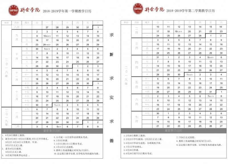 2018-2019学年校历