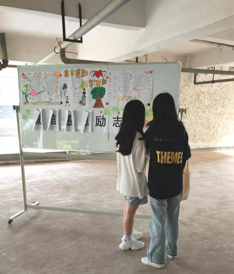 通过发放传单、鼓励同学们写下心得的形式,宣传诚信感恩励志人物故事,传递诚信感恩励志之情。