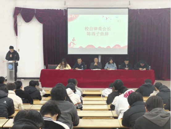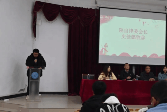 在学风建设大会上,员工科负责人熊一谦老师致词,祝贺委员会成立并致谢筹备人员。他阐明自律委“自律为核、服务为宗”的定位,强调其是服务同学、引领风气、联结师生的关键平台。并提出三点要求:明确定位履职、率先垂范自律、深入同学架桥,号召全院同学理解与支持,共促学院学风建设与人才培养。积极落实《学风建设项目管理办法》是学院回应育人要求、助力学子成长的关键举措。